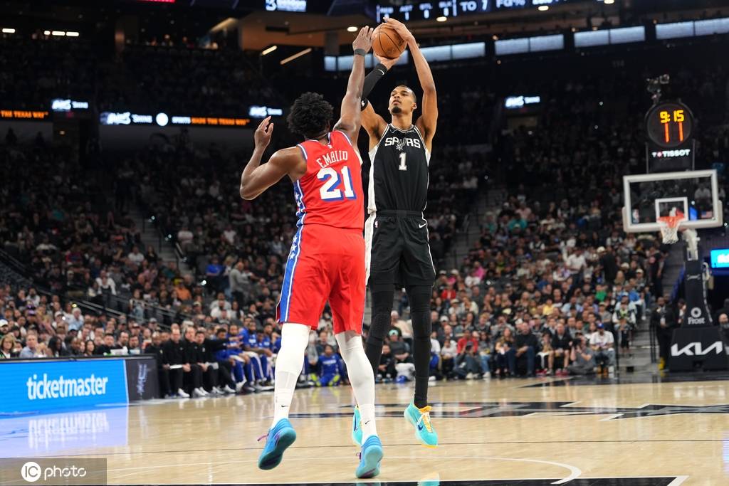 次节比赛,恩比德罚中一球追平比分,两队多次交换领先,马刺逐渐打出进攻高潮,福克斯连续内线得分,卡斯尔和科内特相继篮下取分,马刺很快将分差拉开到5分。哈珀外线三分命中扩大优势,文班亚马延续出色状态,快攻扣篮、三分命中接连砍分,马刺始终保持5分以上领先,半场结束时马刺62-55领先7分。